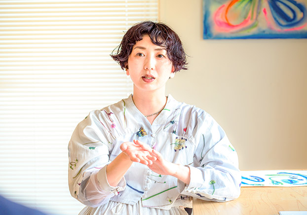 明るい笑顔で、自由にのびのびと描くことの楽しさ、絵を飾って眺めることのすばらしさを語ってくれました。