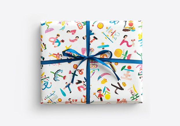 『ONLY ONE NAME』では、オプションのラッピングをオーダーすると、ラッピングの収益の一部が国連WFP(国際連合世界食糧計画)に寄付されます。Boojilさんのこれまでの作品が散りばめられたラッピングペーパーやカラフルなリボンは、開封するときのワクワク感をさらに増してくれます!「絵を誰かにプレゼントすることが寄付につながり、他の人の喜びにもつながるというサイクルを導入しました。アジアを旅して、生活に困窮するたくさんの子どもたちと接してから絵を描く活動が始まったので、絵で社会貢献ができないかとずっと思っていましたが、ONLY ONE NAMEを始めて叶えることができました。これからもこういう感覚を持ち続けながら活動していきたいと思っています」